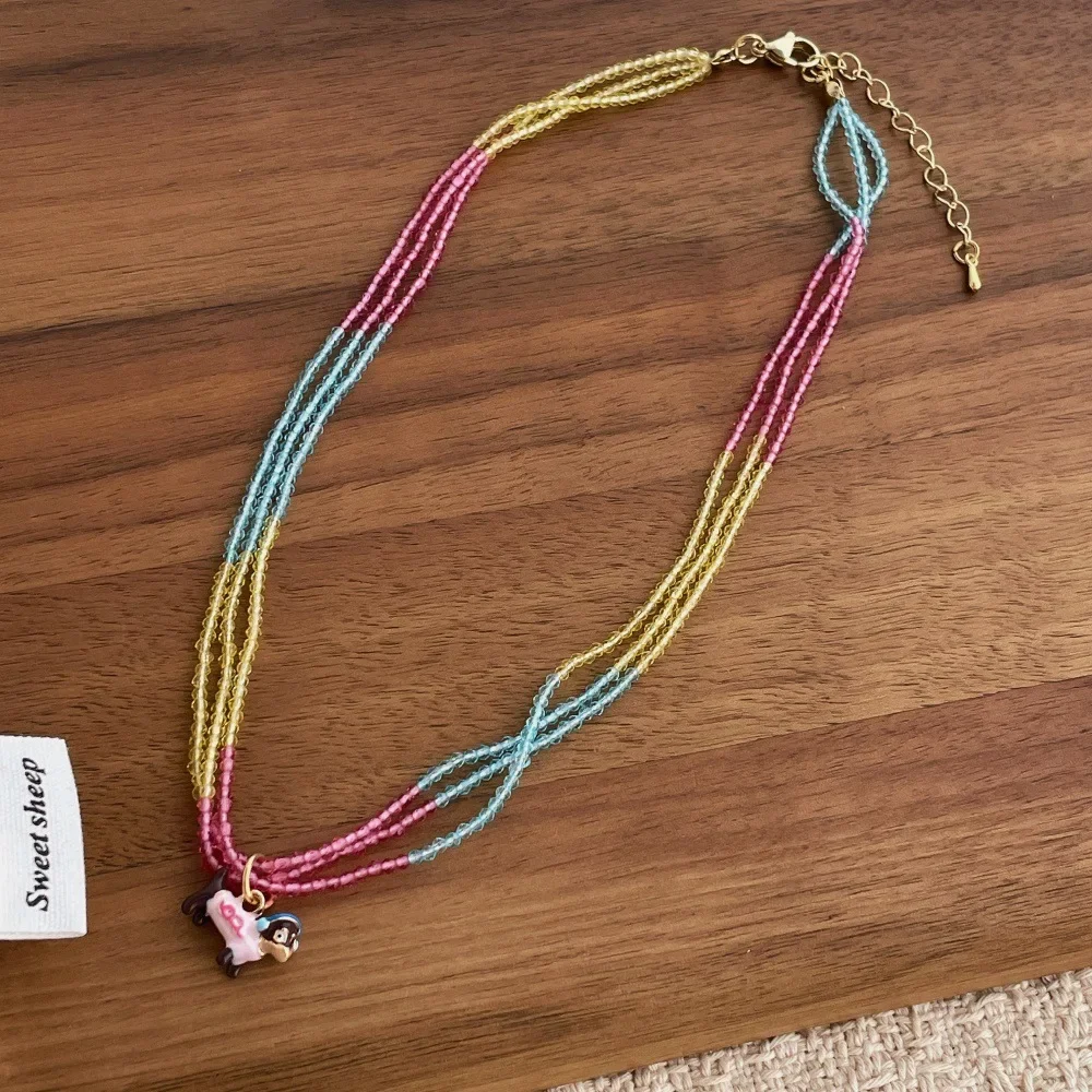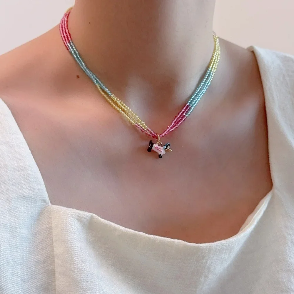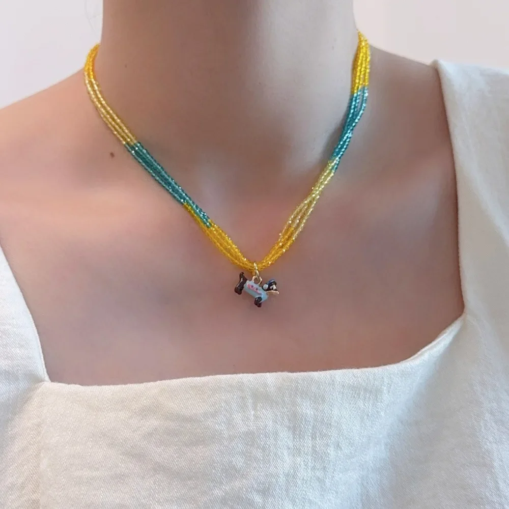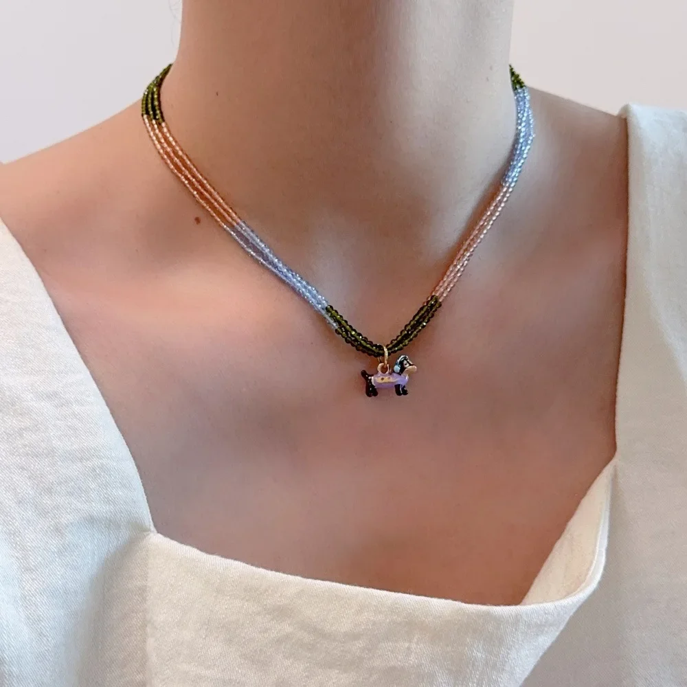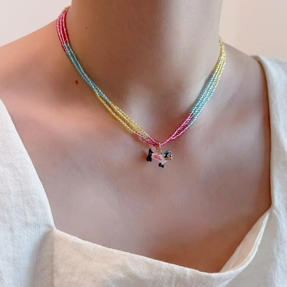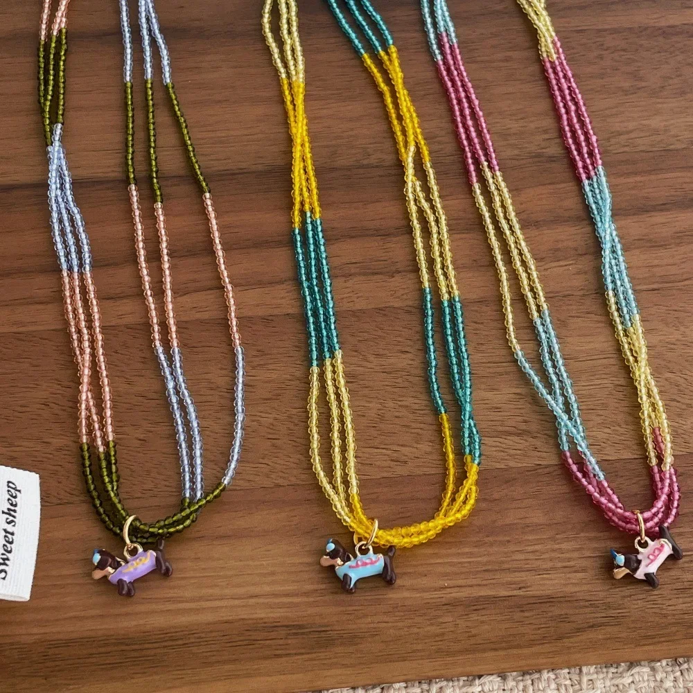 Kawail Mix Color Dachshund Pendant Necklaces for Women