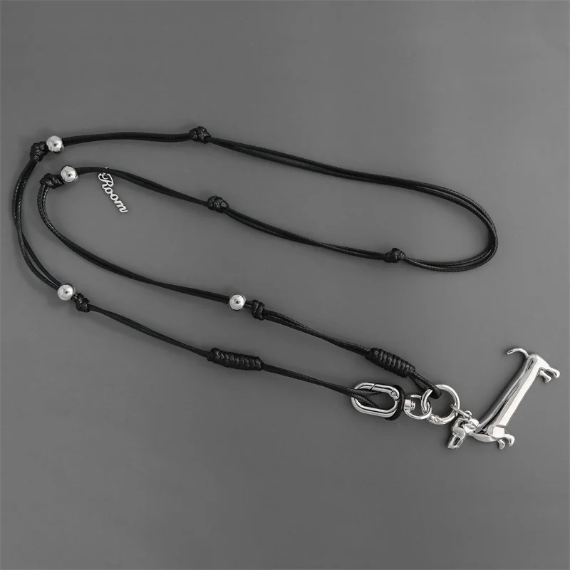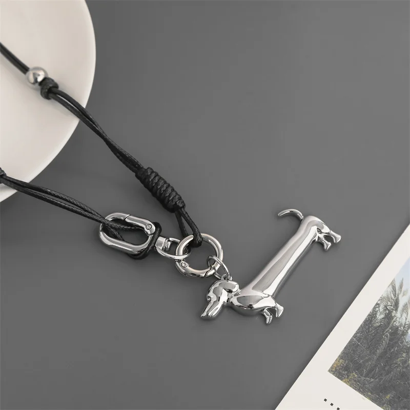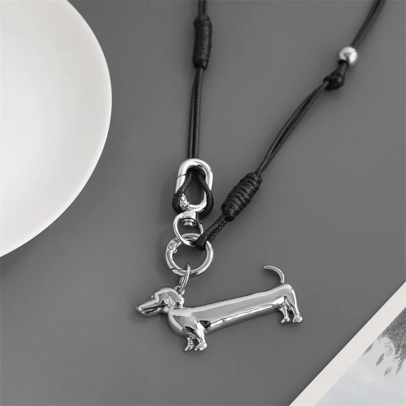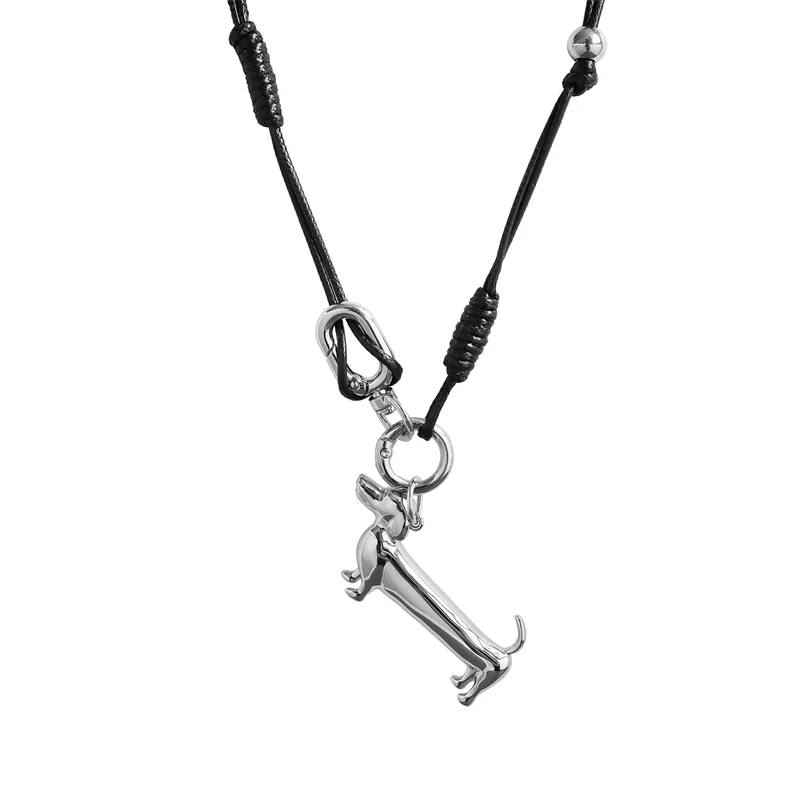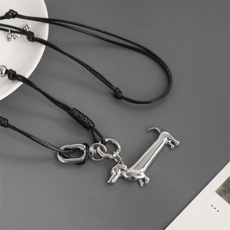 Korean Wax Thread Sausage Dog Necklace for Men and Women